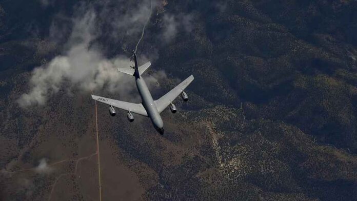 அமெரிக்கா, இஸ்ரேல் கூட்டுப் படைகள் மற்றும் ஈரான் ராணுவத்துக்கு இடையே நேற்று 14-வது நாளாக போர் நீடித்தது. ஈரான் மீது தாக்குதல் நடத்தும் அமெரிக்கா, இஸ்ரேல் போர் விமானங்களுக்கு நடுவானில் எரிபொருள் நிரப்பப்படுகிறது. இதற்காக அமெரிக்க விமானப் படையின் யு.எஸ்.கே.சி -135 ரக எரிபொருள் நிரப்பும் விமானங்கள் பயன்படுத்தப்படுகின்றன