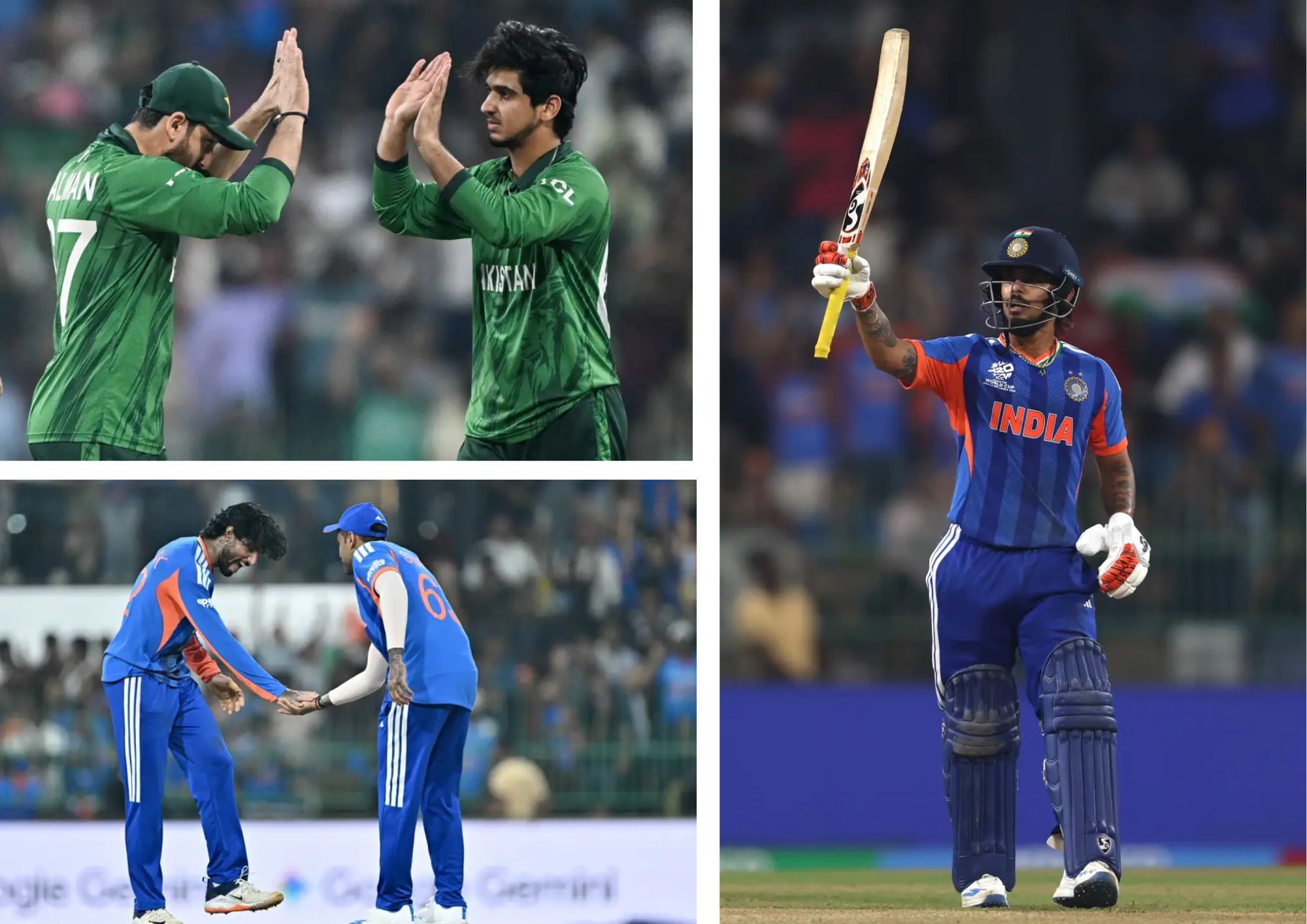 டி20 உலகக் கோப்பையில் இந்தியா- பாகிஸ்தான் இடையிலான போட்டி கொழும்பில் நடைபெற்றது. இதில் டாஸ் வென்ற பாகிஸ்தான் பந்து வீச்சை தேர்வு செய்தது. அதன்படி முதலில் களம் இறங்கிய இந்தியா 7 விக்கெட் இழப்பிற்கு 175 ரன்கள் சேர்த்தது. இஷான் கிஷன் 40 பந்தில் 77 ரன்களும், சூர்யகுமார் யாதவ் 29 பந்தில் 32 ரன்களும், ஷிவம் துபே 17 பந்தில் 27 ரன்களும் அடித்தனர். ரிங்கு சிங் 4 பந்தில் 11 ரன்கள் எடுத்து ஆட்டமிழக்காமல் இருந்தார். பாகிஸ்தான் அணியில் சயீம் ஆயுப் 3 விக்கெட்டுக்கள் வீழ்த்தினார்.