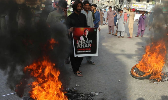 பாகிஸ்தான் முன்னாள் பிரதமர் இம்ரான் கான் கைது செய்யப்பட்டதையடுத்து, பாகிஸ்தானில் பெரும் போராட்டங்கள் நடைபெற்று வருகின்றன.