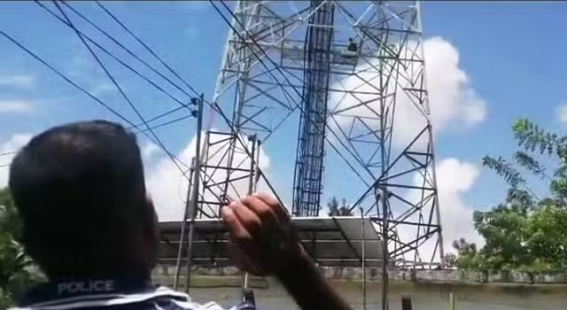 தொலைபேசி கோபுரத்தில் ஏறி போராட்டம் நடத்திய நபரை கீழே இறக்குவதற்கு பொலிஸார் சுமார் நான்கு மணித்தியாலங்கள் பிரயத்தனம் மேற்கொண்டனர்.