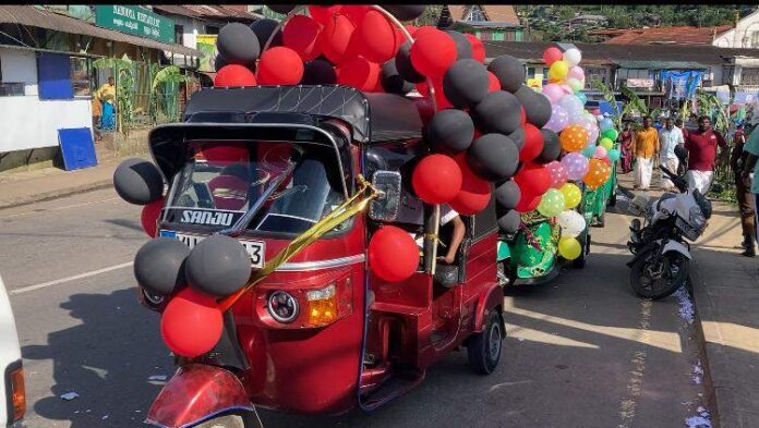 பின்னர் பிரதான நகரினை முச்சக்கர வண்டிகள் மூலம் ஊர்வலமாக சுற்றி வந்தனர் .