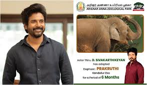 இந்நிலையில் வண்டலூர் அறிஞர் அண்ணா உயிரியல் பூங்காவில் இருந்து பிரக்ருதி என்ற யானையை அவர் தத்தெடுத்து உள்ளார். இந்த யானைக்கான உணவு மற்றும் பராமரிப்பு செலவுகளை 6 மாதங்களுக்கு அவர் வழங்குவார் என வண்டலூர் பூங்கா நிர்வாகம் தெரிவித்துள்ளது. சிவகார்த்திகேயன் இதற்கு முன் வண்டலூர் பூங்காவிலிருந்து ஒரு சிங்கத்தையும், புலியையும் தத்தெடுத்திருந்தார்.