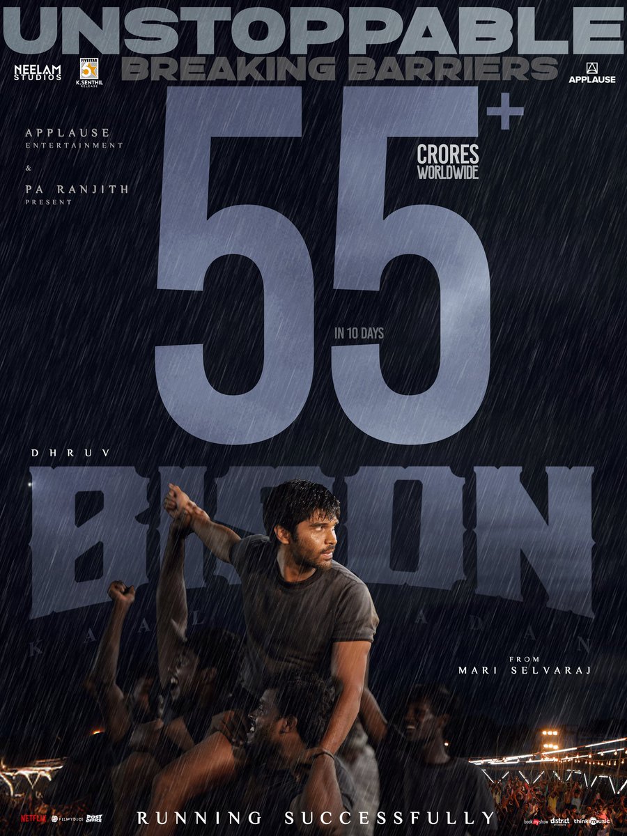 மாரி செல்வராஜ் இயக்கியுள்ள படம் ‘பைசன் காளமாடன்’. இதில் துருவ், பசுபதி, ராஜிஷா விஜயன், அனுபமா பரமேஸ்வரன் உள்ளிட்ட பலர் துருவ் விக்ரமுடன் நடித்துள்ளனர். அக்டோபர் 17-ம் தேதி வெளியான இந்த படம் முதலில் மெதுவாக தொடங்கி நான்கு நாட்களுக்குப் பிறகு அதிக வரவேற்பை பெற்று வருகிறது.