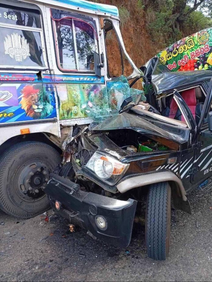 லொறியும் தனியார் பேருந்தும் நேருக்கு நேர் மோதி விபத்து – நுவரெலியாவில் சம்பவம்